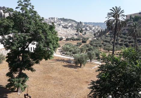 In Gethsemane, aan de voet van de Olijfberg, staan olijfbomen die zeer oud zijn, mogelijk ouder dan duizend jaar. In de Hof van Gethsemane bad Jezus: 'Vader, als U wilt, neem deze drinkbeker van Mij weg; maar laat niet Mijn wil, maar de Uwe geschieden' (Lukas 22: 42). In deze olijfboomgaard werd Hij gevangen genomen.